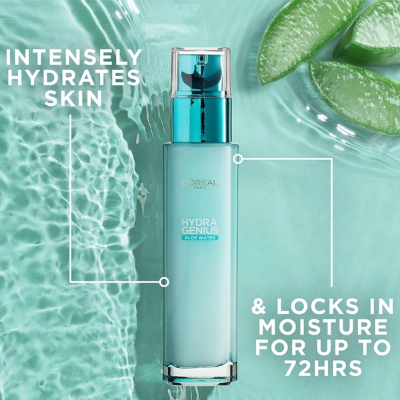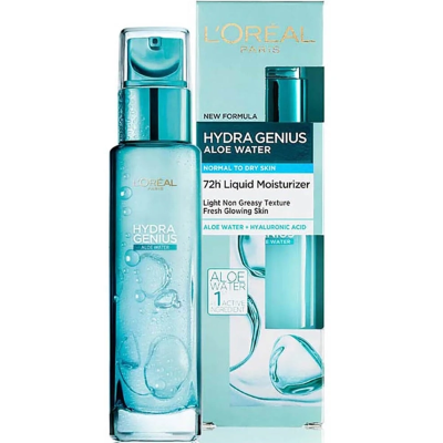 سرم آبرسان هیدرا جنیوس لورال پوست نرمال تا خشک 72 ساعته پمپی 70میل | L'OREAL Hydra Genius Aloe Water + Hyaluronic Acid Normal to Dry Skin 72hr