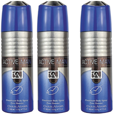 اسپری خوش بو کننده بدن اکتیو من آبی مردانه اصل کریس آدامز دئودورانت 24 ساعته 200 میل | CHRIS ADAMS Active Man Deodorant Body Spray Pour Homme 200ml