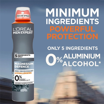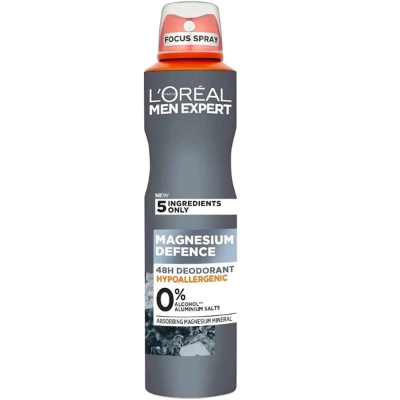 اسپری ضد تعریق مردانه لورال منیزیوم دیفنس ضد حساست خاکستری 250 میل | LOREAL DEODORANT hypoallergenic men magnesium defence 250ml