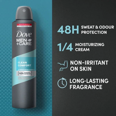 اسپری ضد تعریق داو مردانه کلین کومفورت 48 ساعته 250 میل | Dove Antiperspirant Men care CLEAN COMFORT 48h 250ml