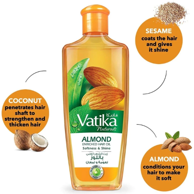 روغن مو بادام واتیکا اصل نرم کننده و براق کننده موی سر 200 میل | Vatika Almond Enriched hair Oil Soft & Shiny hair 200ml