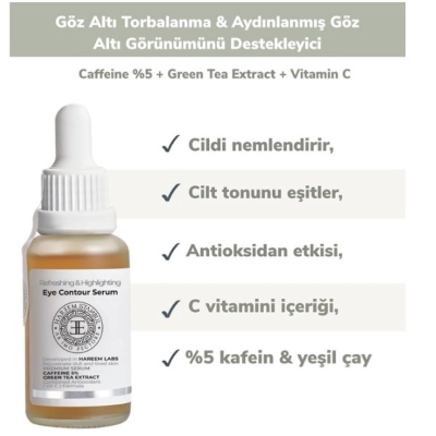 سرم دور چشم کافئین هارم استانبول مدل کانتور چشم حاوی چای سبز 30میل | HAREEM ISTANBUL Refreshing & High On Eye Contour Serum 30ml
