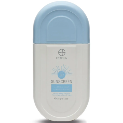 کرم ضد آفتاب آبرسان استلین فوق العاده SPF80 سبک بی رنگ فلوئیدی 100 گرم | ESTELIN SUNSCREEN ULTRA-LIGHT Hydrating Invisible SPF80 100g