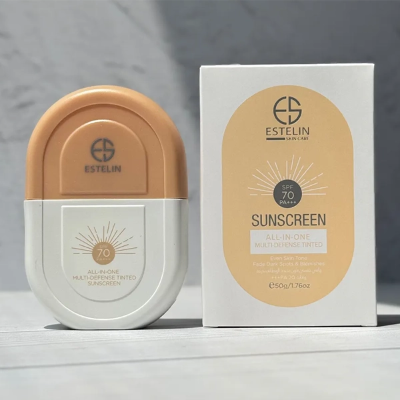 کرم ضد آفتاب چند منظوره استلین رنگی SPF70 آل این وان 50 گرم | ESTELIN SUNSCREEN All-In-One multi-Defence Tinted SPF70 50g