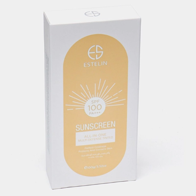 کرم ضد آفتاب استلین چند منظوره رنگی SPF100 آل این وان 100 گرم | ESTELIN SUNSCREEN All-In-One multi-Defence Tinted SPF100 100g