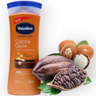 لوسیون بدن وازلین کاکائو اصل قهوه ای مناسب پوست خشک آبرسان 48ساعته 400 میل | Vaseline Cocoa Healthy glowing skin Body Lotion Dry skin 400ml